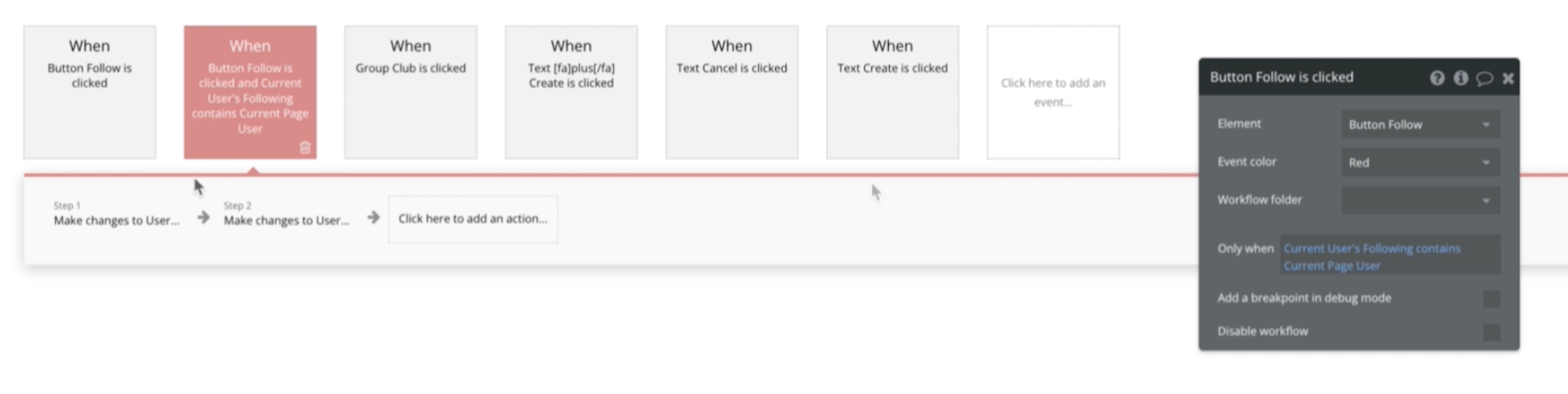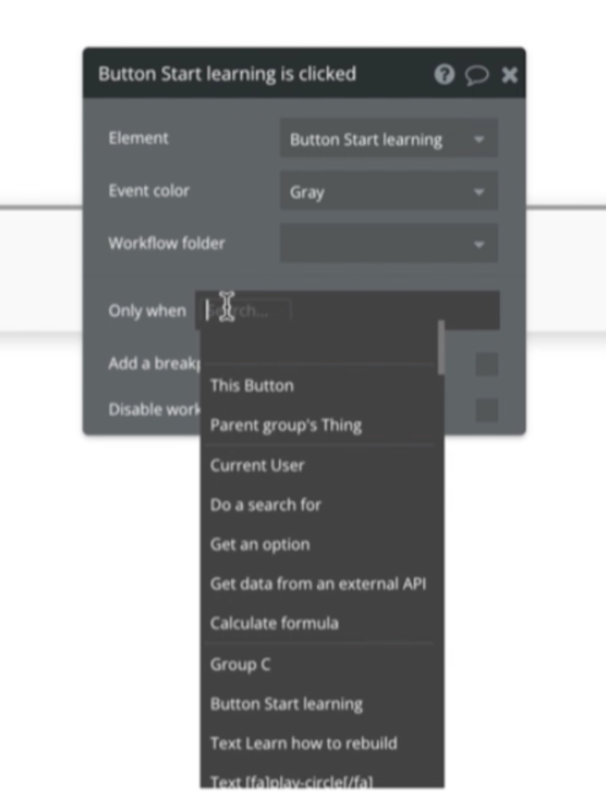 - 버튼을 클릭했을 때 only when ~ 설정 가능