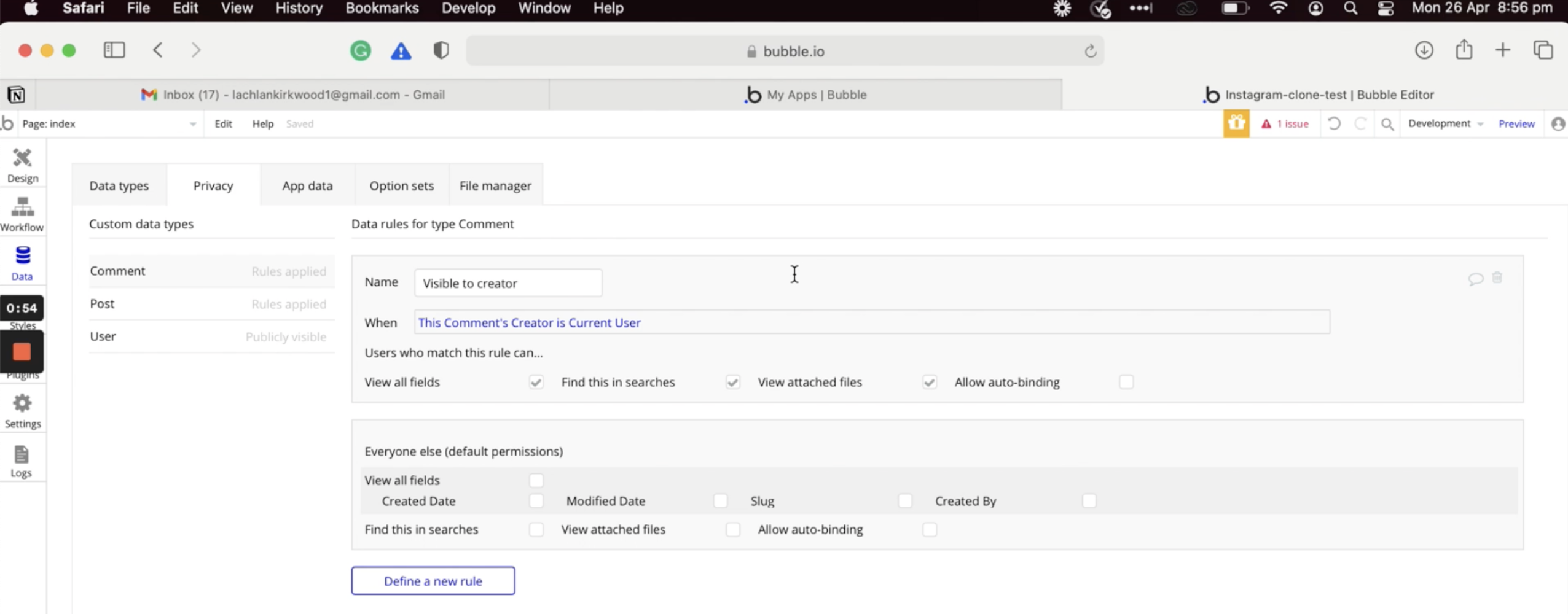 어제 설정한 DB에 대해서 Privacy 항목을 세부 설정할 수 있음