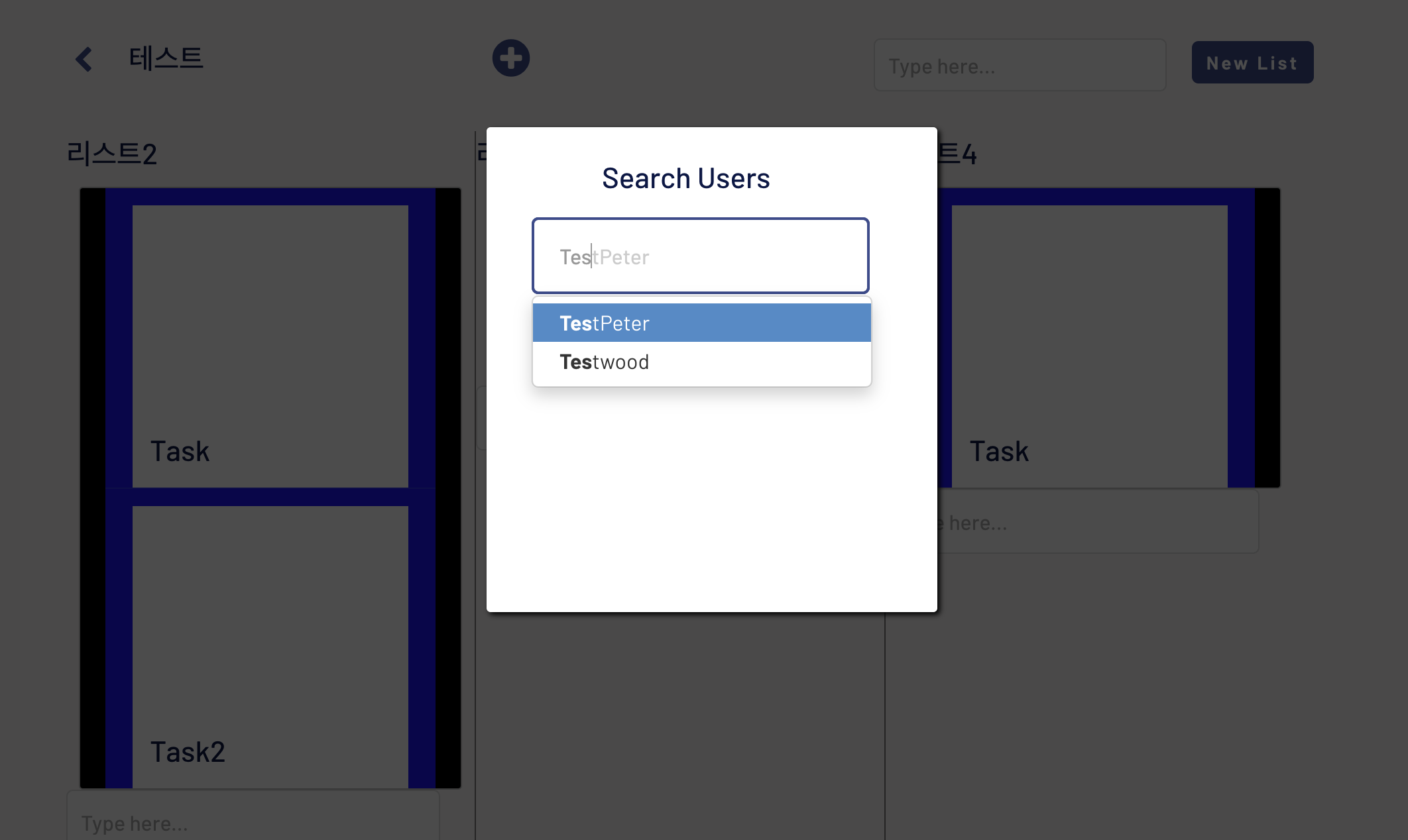 사용자 검색을 위한 팝업을 생성하고 Element 중에서 Search Box를 추가함.