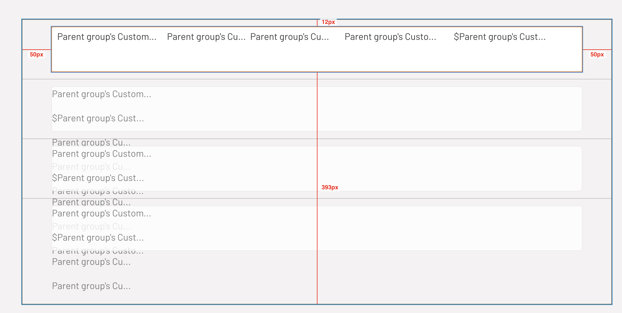 ? Repeating group 생성 후 각각의 text element를 배열했는데, 왜 아래쪽 반복그룹에는 동일한 레이아웃이 나오지 않을까?