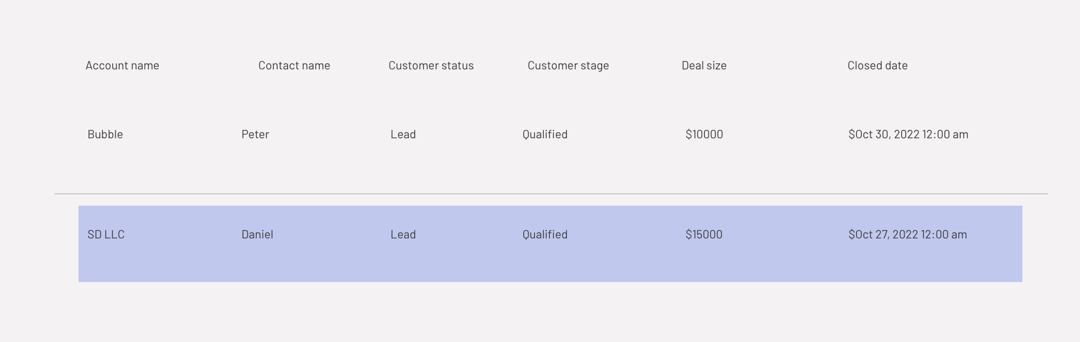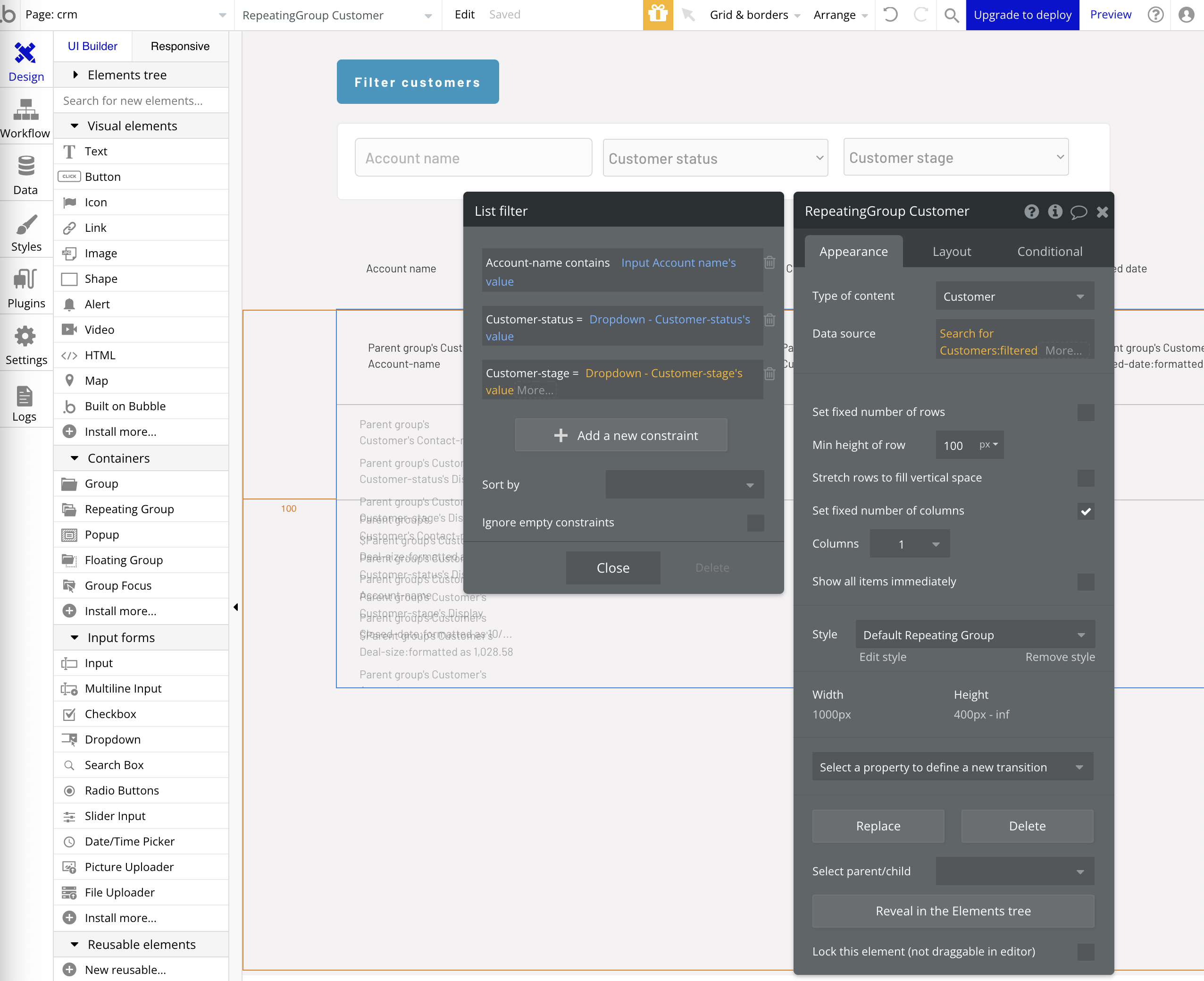 2) filtered 항목들에서 account-name includes input value / customer-status = dropdown value / customer-stage=dropdown value 설정을 해줘야 함