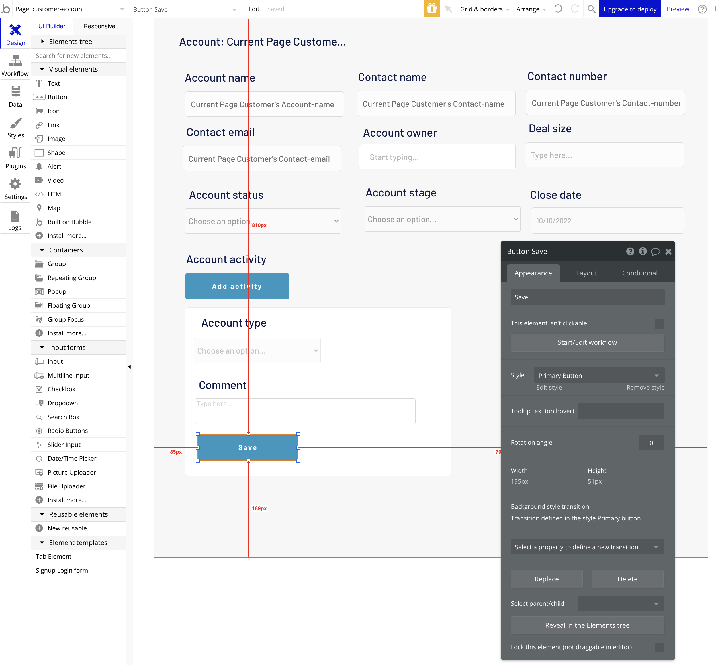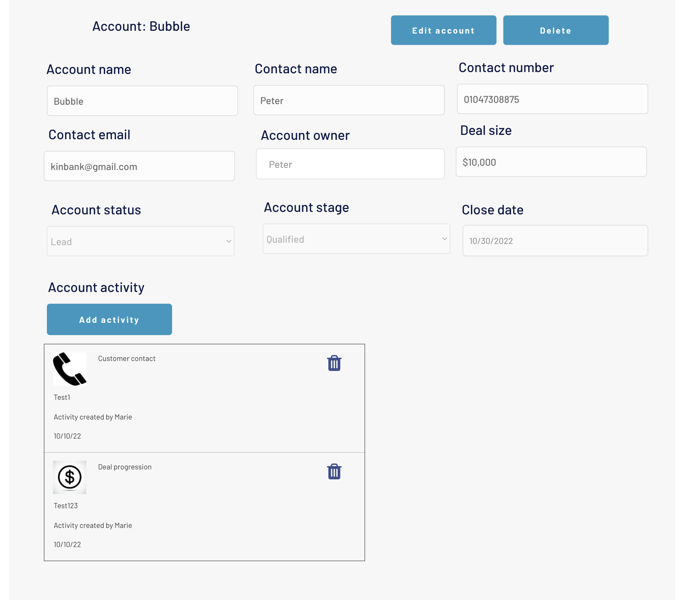 지난 시간 만들었던 customer profile page 하단에 Account activity (계정타입과 코멘트)를 저장하는 기능 생성.