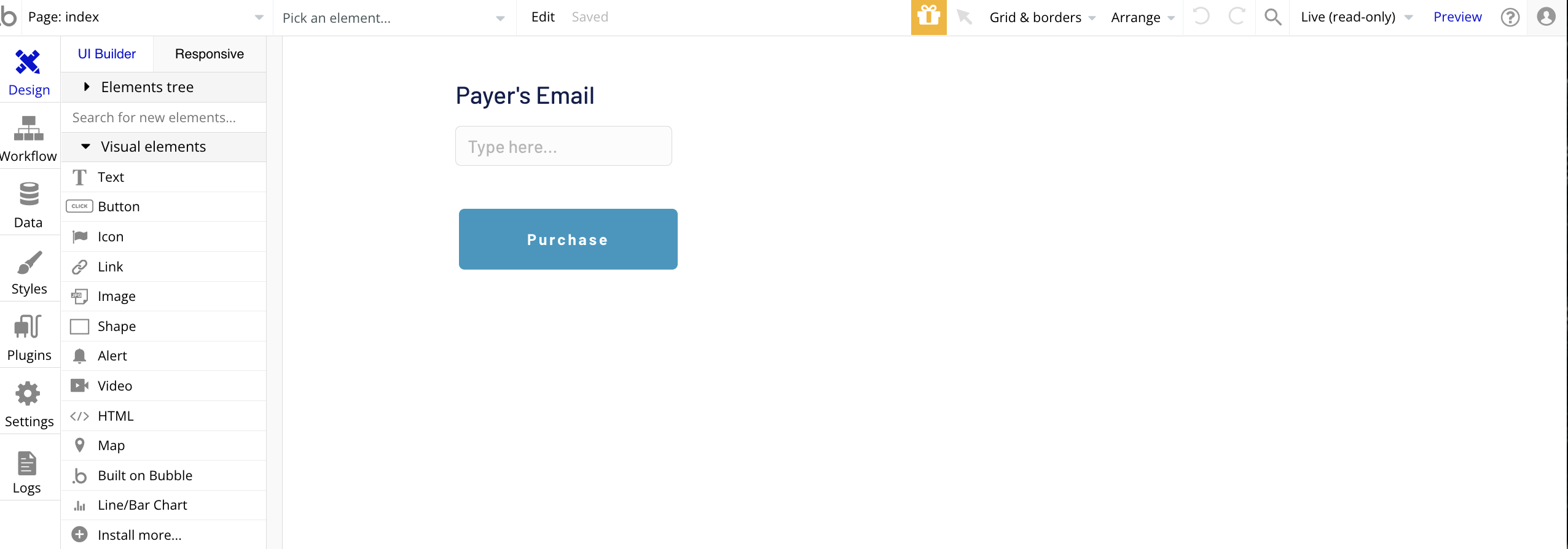 구매 버튼을 생성하고 Payer's email이 필수 값으로 있어야 한다고 해서 Input form으로 Email을 받아서 Payer's email로 보냄.
