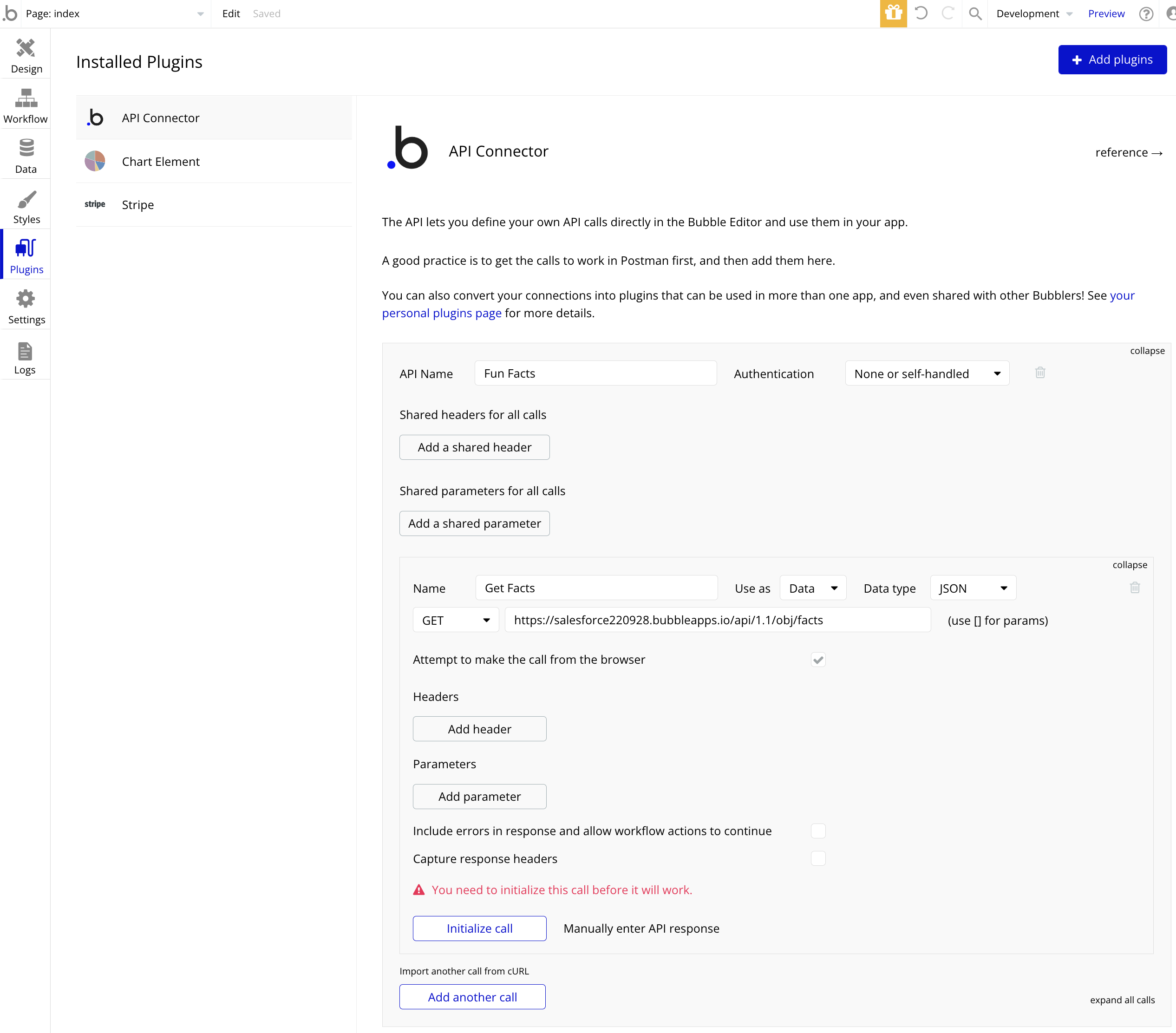 다시 어제 막혔던 부분으로 돌아와 'Initialize call' 버튼을 클릭했다.