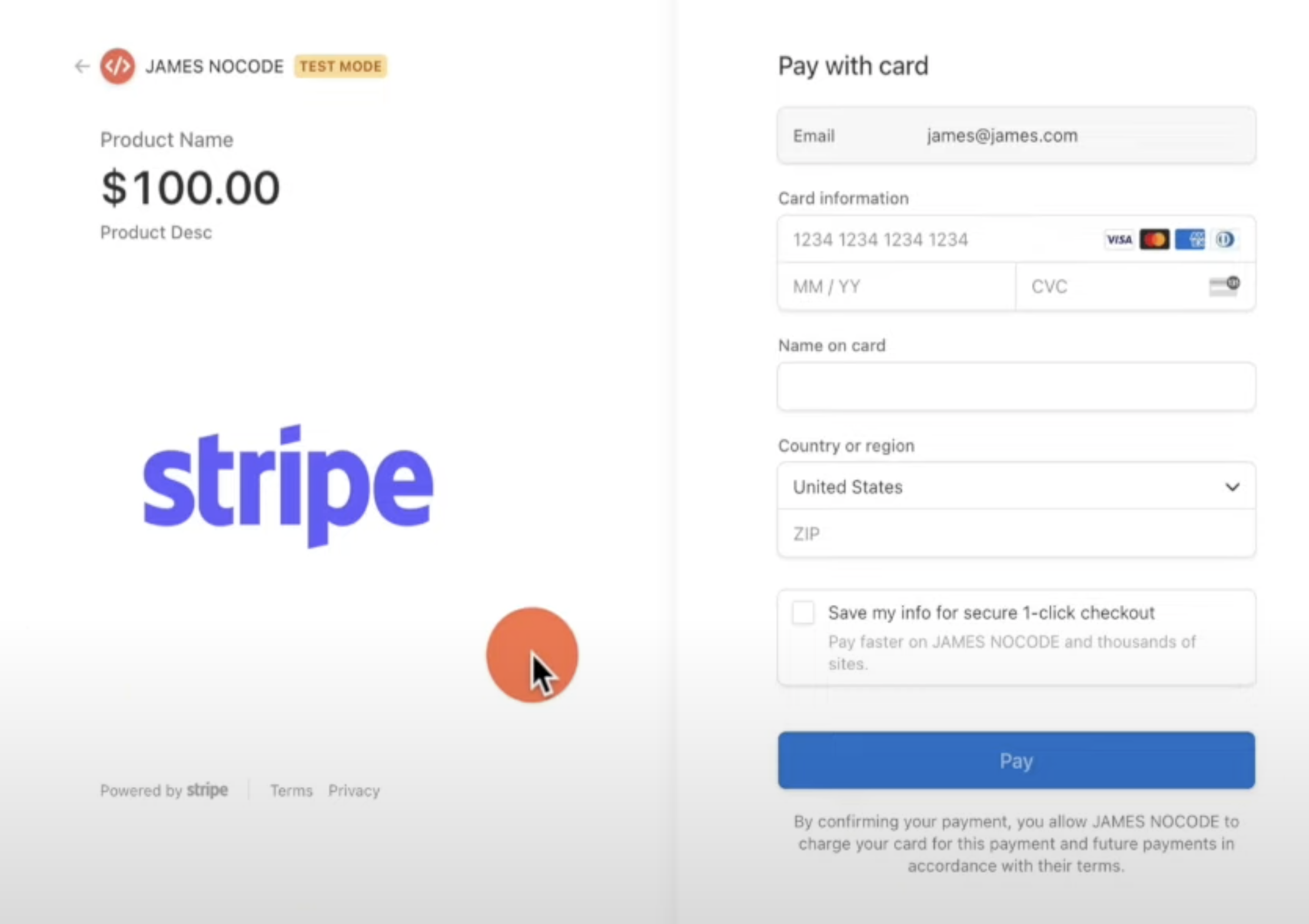 사용자를 Stripe 결제창으로 이동시켜, 설정한 금액을 결제할 수 있도록 하는 방식임.