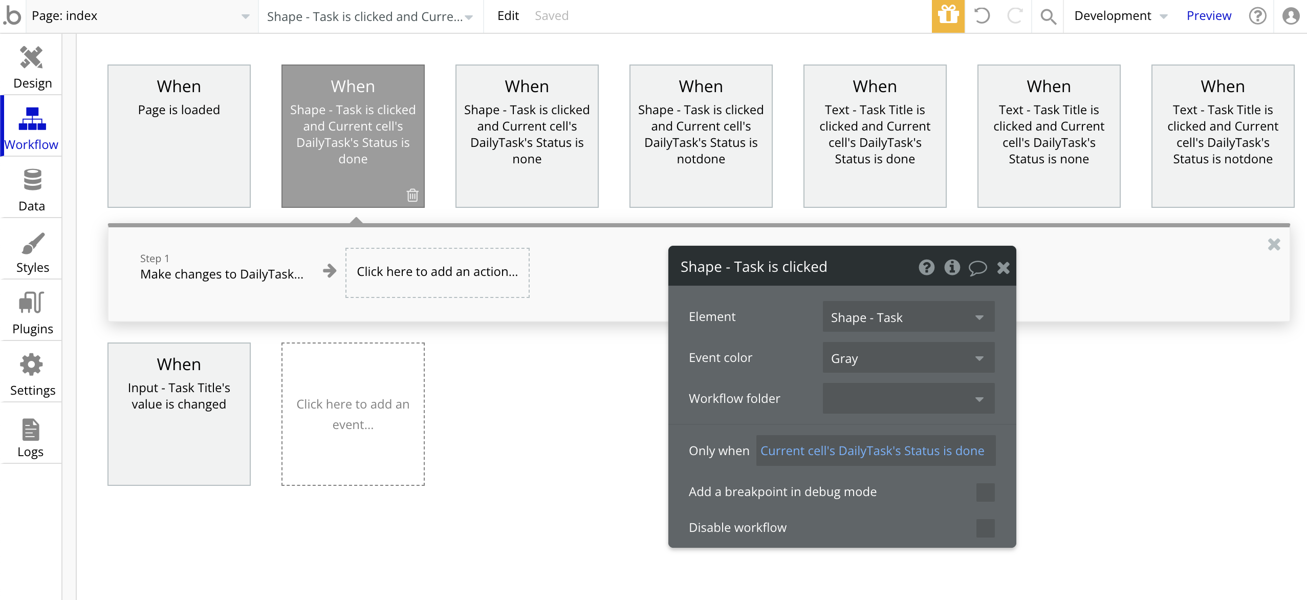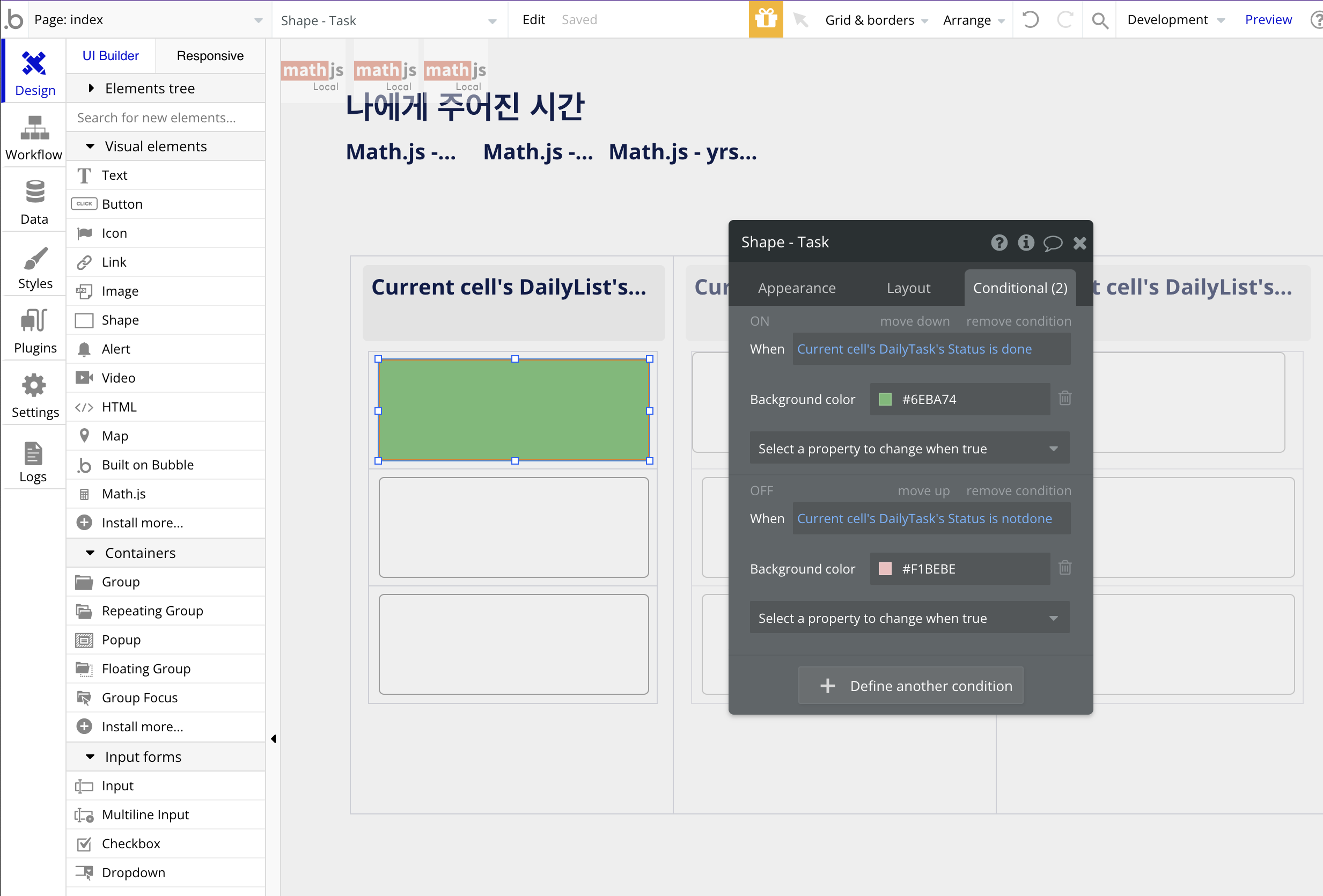 그러나 Repeating Group - List 안에 Input form을 만들고, 그 결과값이 Repeating Group - Task 안에서 보여지도록 구현하려니 여건 복잡한 부분이 많다...