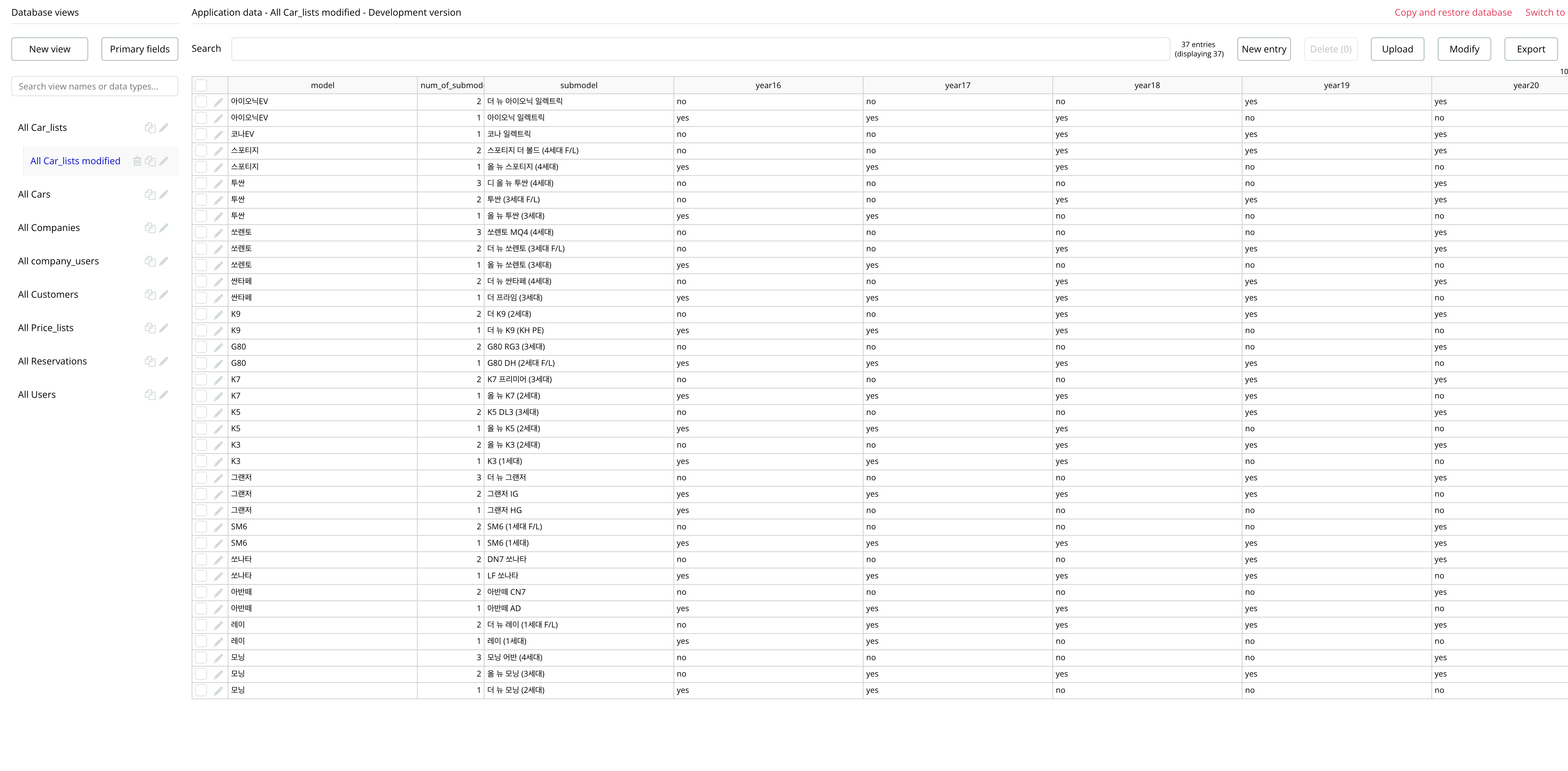 아래는 car_list에서 각 서브모델별로 연식 존재여부를 boolean (y/n)로 사전에 표기해 놓은 표.