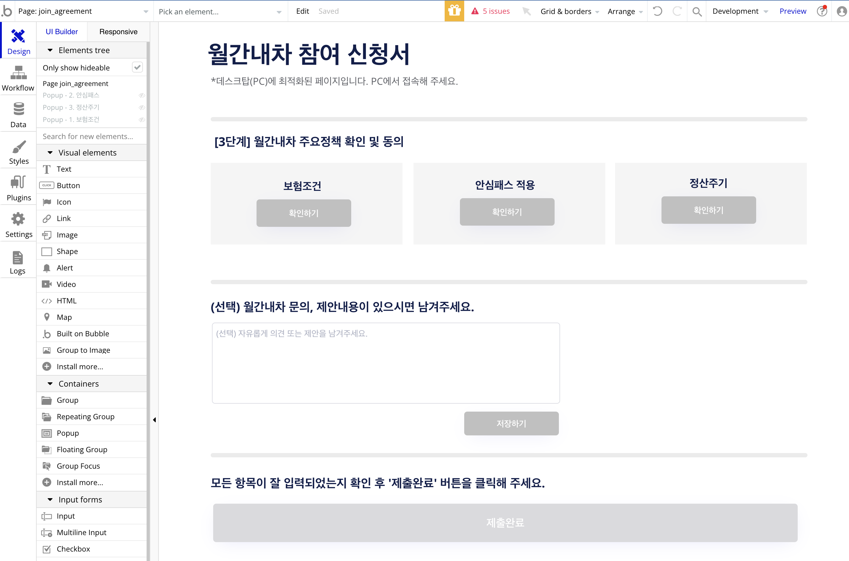 월간내차 정책을 소개하고 동의를 받는 페이지는 별도로 구현하였다.