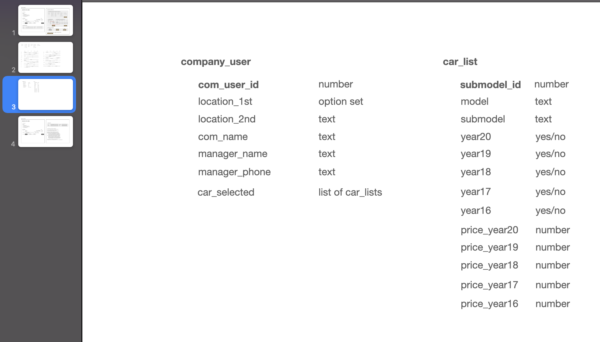 이렇게 저장된 company_user's car_lists 들은, [3단계]에서 차량별 입금가를 선택하는 과정에서 load 될 예정이다.