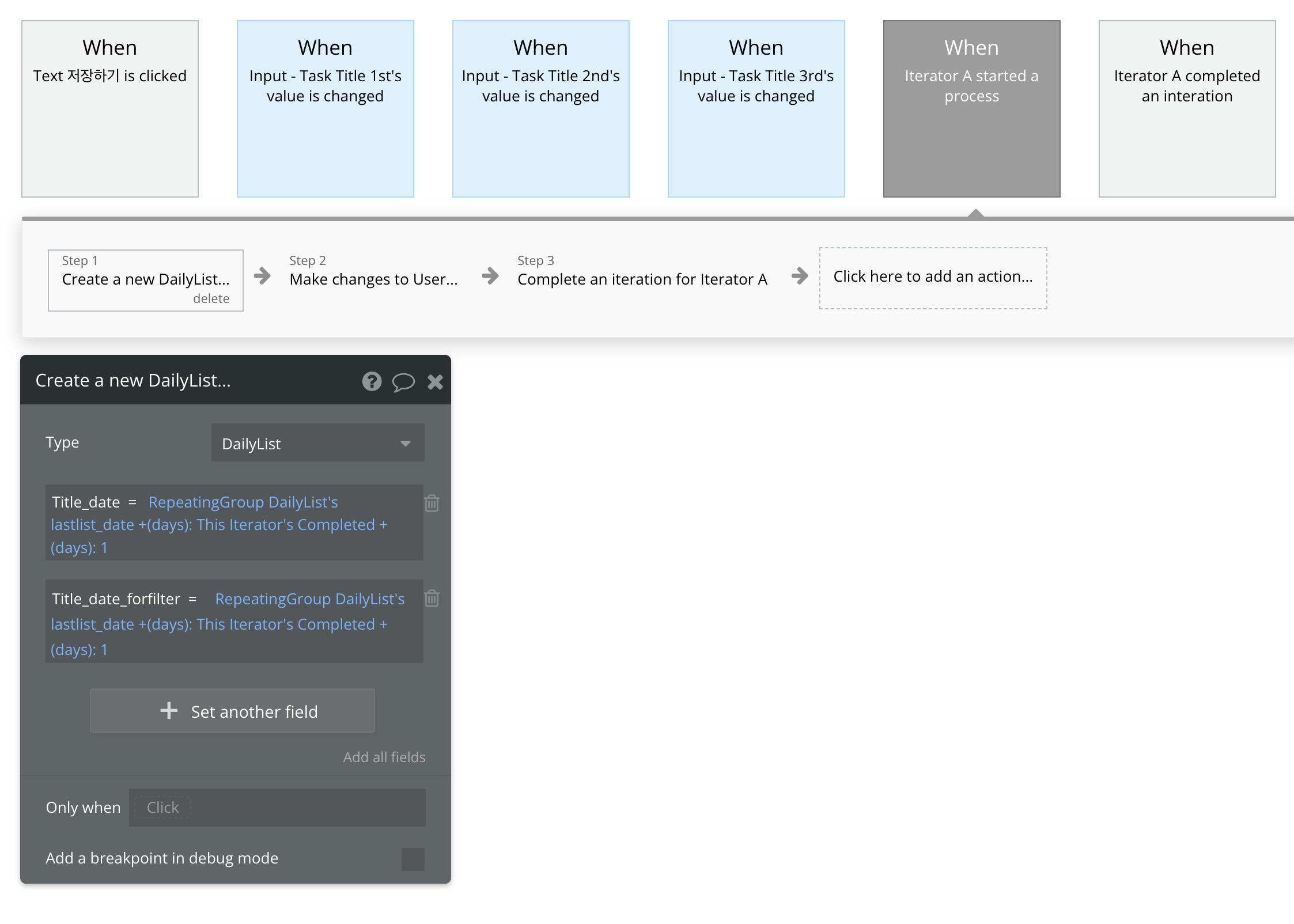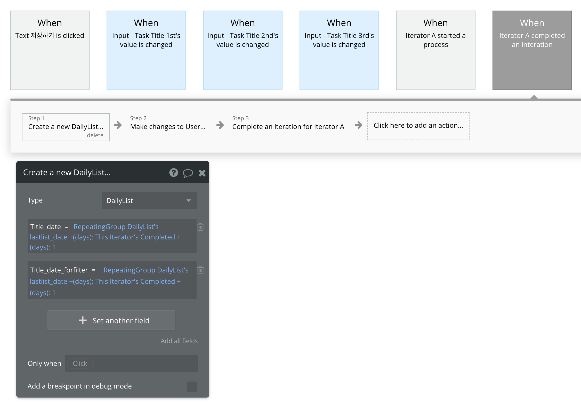 어제 배웠던 Iterator 개념과 앞서 구했던 delta_num (내가 붙인 변수명으로, 현재날짜와 마지막 List날짜와 차이값을 integer로 저장해놓은 변수) 개념을 사용해서, 마지막 List 카드 이후 현재까지 비어있는 카드를 생성시키는 기능을 구현한다.