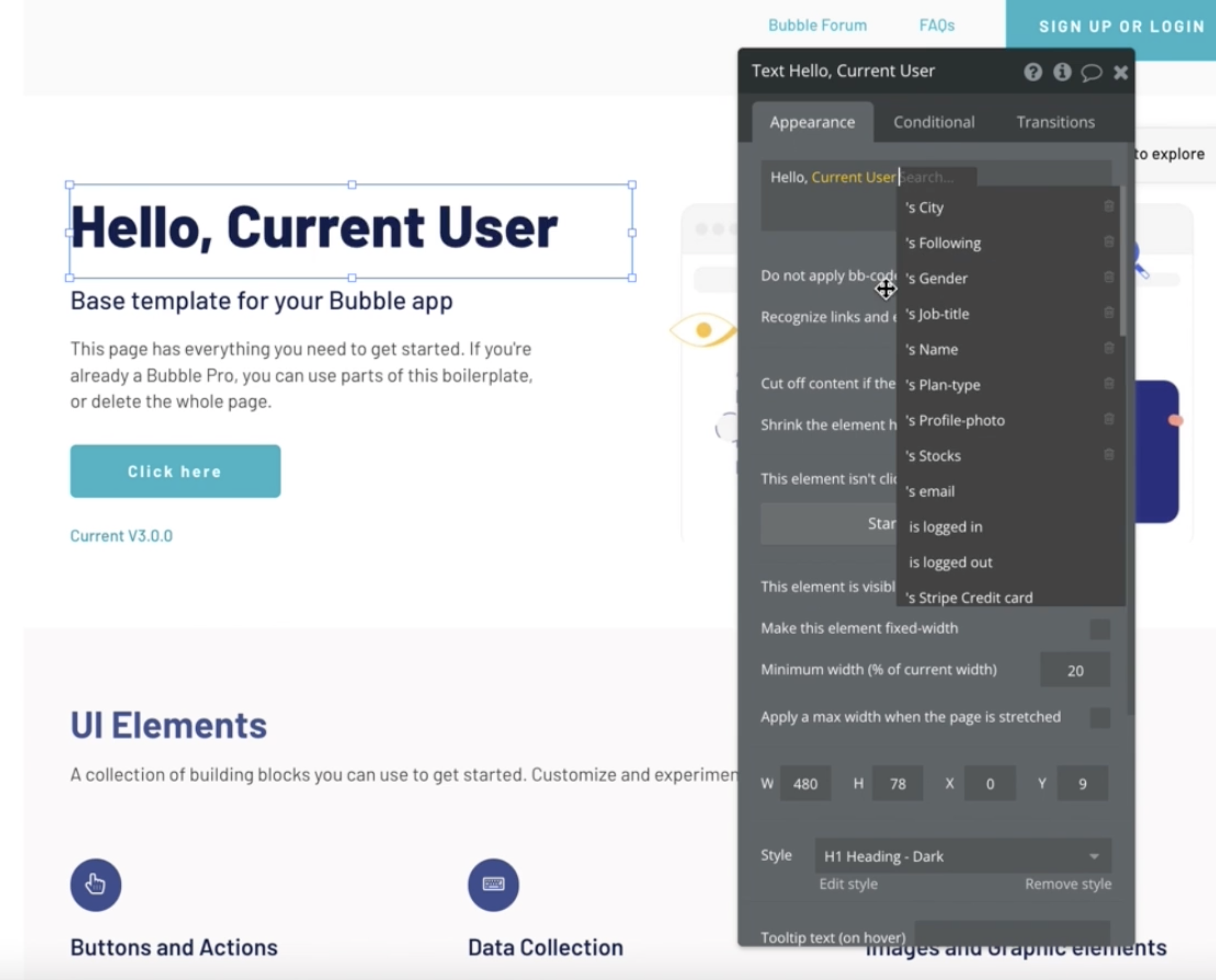 - Dynamic data: Text 상에서 동적 값을 드롭다운 (이미지도 다이나믹으로 노출 가능. 예: 사용자의 프로필 이미지)