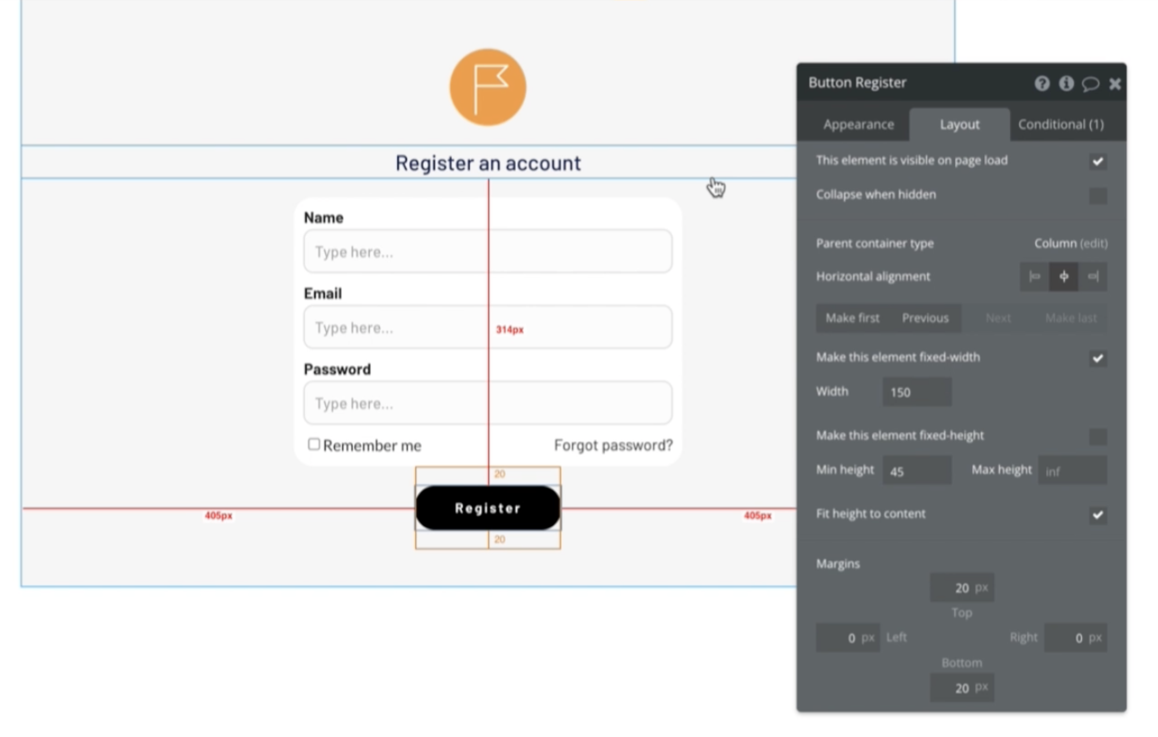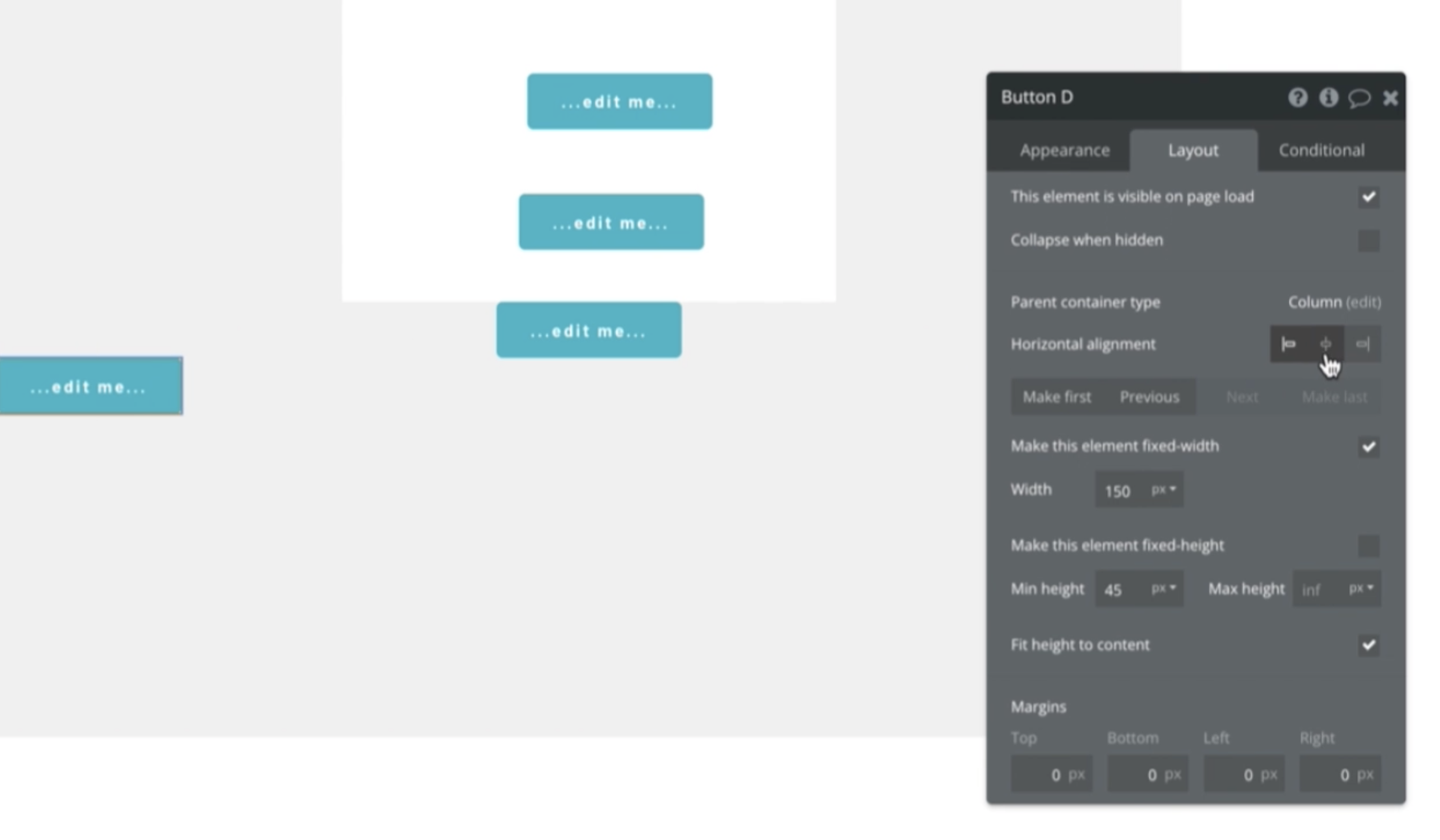 팁! layout 설정할 때 최대한 정렬과 마진설정, container layout 설정 등으로 UI 조정하기 (c.f. 일일이 드래그하면서 layout 설정)