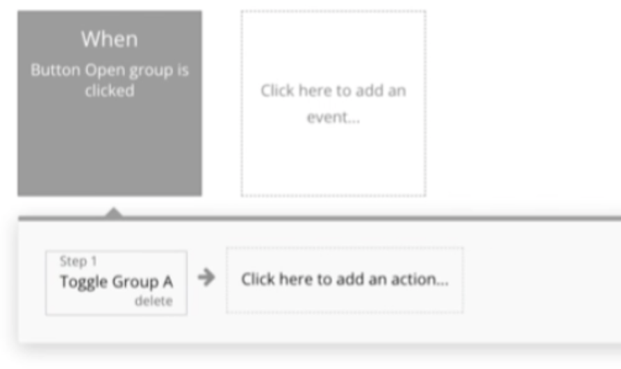 위 이미지에서 open group 클릭 시에, 숨겨진 container가 toggle 형태로 보여지도록 workflow 설정